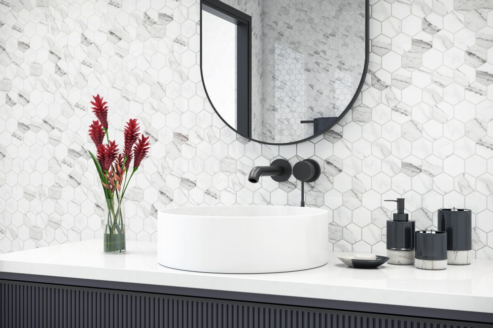 Material: Cararra White Hexagon Mosaic