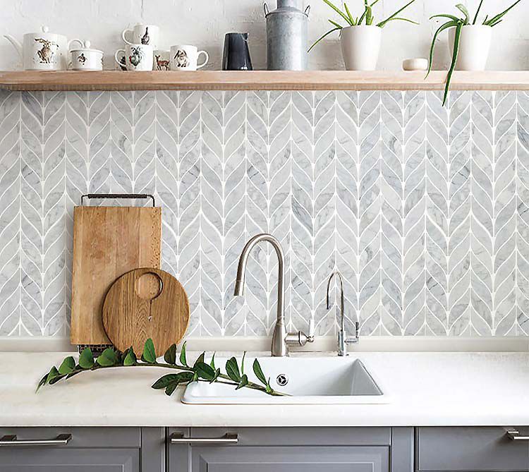Material: Cararra White Leaf Shaped Mosaic