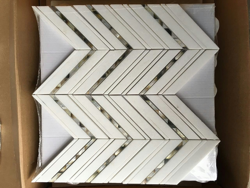 Material: Shell and Thassos White Marble Chevron Mosaic